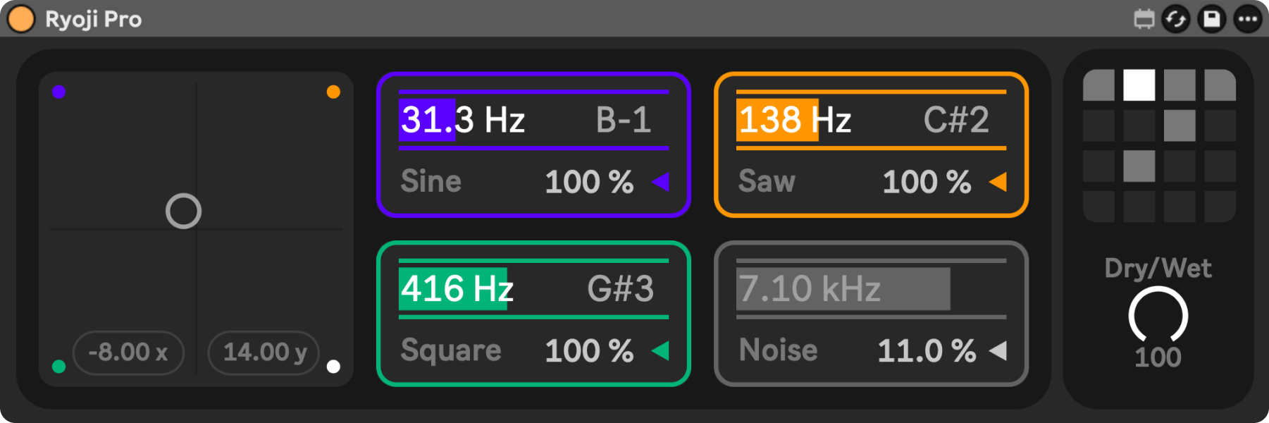 Turn any sound or loop into crisp Ryoji Ikeda glitches, save presets, play live.